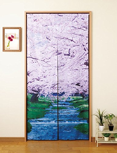 Noren(Japanese curtain) Cherry Blossoms and River" Import from Japan 21548