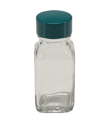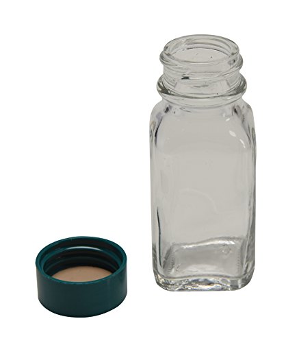 Vestil BTL-SW-G-1-CS Wide-Mouth Square Glass Bottle with Green Cap, 1 oz Capacity, Clear (Pack of 12)