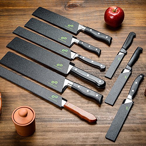 - Complete Kitchen Knife Guard Set – Every order comes with 9 high-quality kitchen knife guards that can be used to protect your favorite serrated, paring, or chef’s knives.