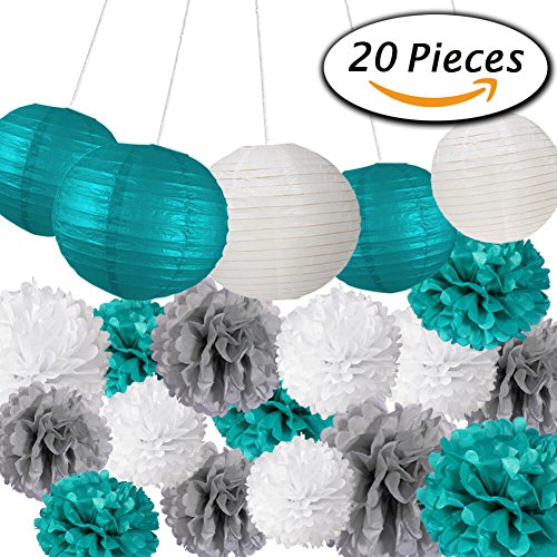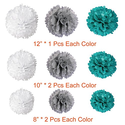 VIVID COLORS – With the adorable color combination of teal, grey and white, these decorations will make an elegant addition to any birthday party, bridal shower or teal decorated celebration