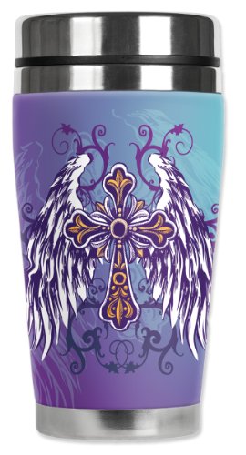 Mugzie Winged Cross Travel Mug with Insulated Wetsuit Cover, 16 oz, Black