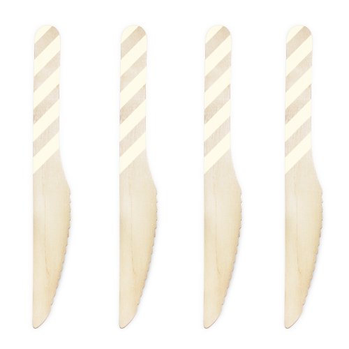 Dress My Cupcake 6.5-Inch Natural Wood Dessert Table Knives, Ivory Striped, Pack of 100