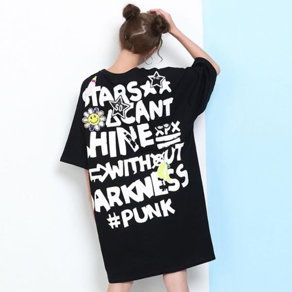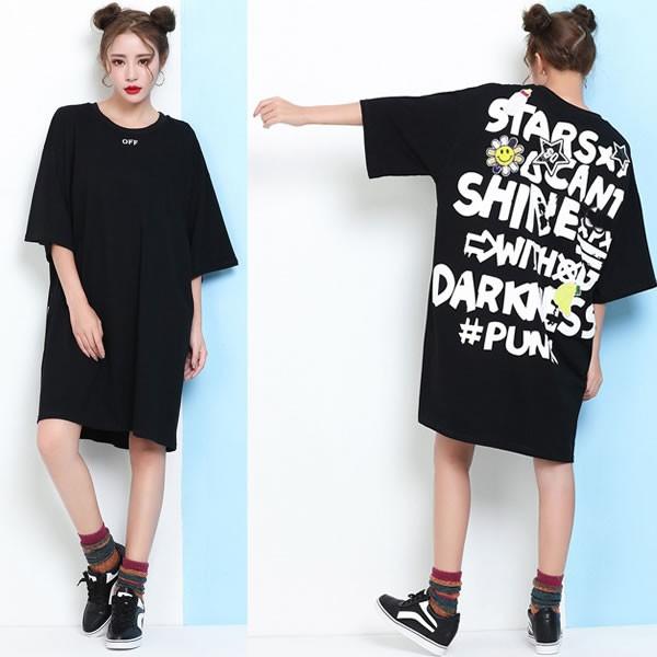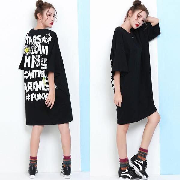 | バックプリント スパンコールワッペン ゆったり ワンピース ミニ丈 黒 ブラック 無地 【ワンピース レディース 女性 ロンデルブラック ワンピース ミニワンピ ロンデルブラック one-piece 体型カバー ワンピース 派手 可愛い 大きいサイズ】 | |