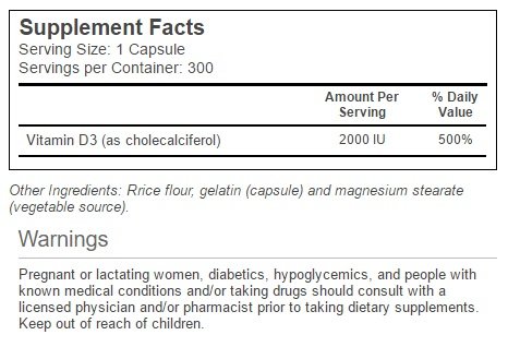 -. Title : Vitacost Vitamin D3 (as Cholecalciferol) -- 2000 IU - 300 Capsules