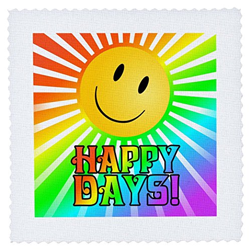 3dRose Happy Days with Smiley Face Sun and Rainbow Background - Quilt Square, 25 by 25-Inch (qs_219496_10)
