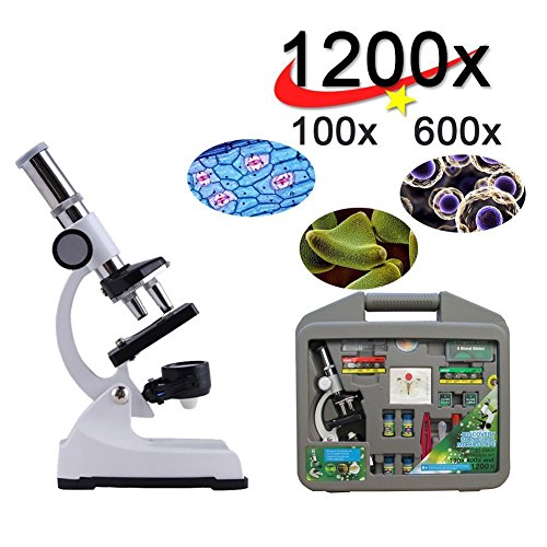 -. Title : HIGOGOGO Beginner Microscope Kit,Led And Mirror Illumination,100X/600X/1200X Magnification,Includes 30-Piece Accessory Set And Plastic Toolbox, Christmas/Halloween/Birthday Gift