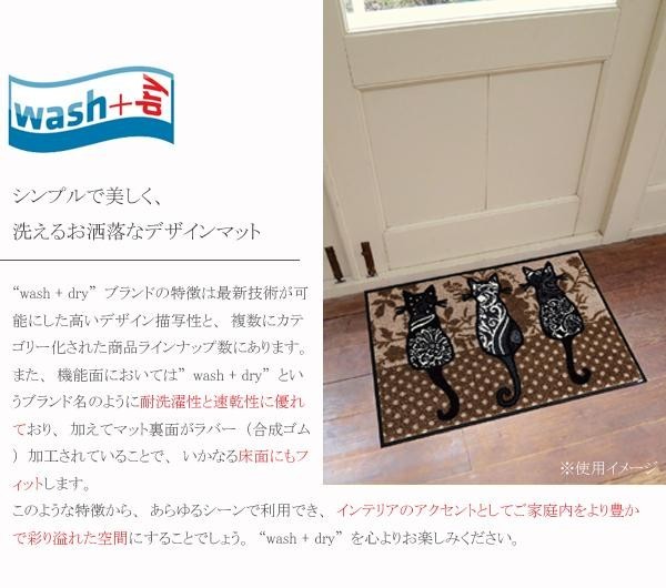 最新技術が可能にした高いデザイン描写が素敵なマットです。機能面においては「wash+dry」というブランド名のように、耐洗濯性と速乾性に優れており、加えてマット裏面がラバー(合成ゴム)加工されていることで、いかなる床面にもフィットします。あらゆるシーンで利用でき、インテリアのアクセントとして、ご家庭内をより豊かで彩り溢れた空間にすることでしょう。 |