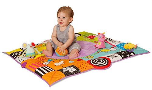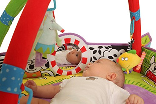 - Feature : Newborn Baby Gym is designed with extra attention to newborn development / Raised side panels provide extra security and coziness / Side panels are designed to look like a baby book / After 3 months it will be a big play mat measures 90x90 cm / Comes with three intriguing, playful dolls and music ball