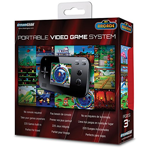 Soar the skies, solve puzzles, play golf or tennis, and much more! Handheld gaming system loaded with 220 fun and easy-to-play video games fits in the palm of your hand!