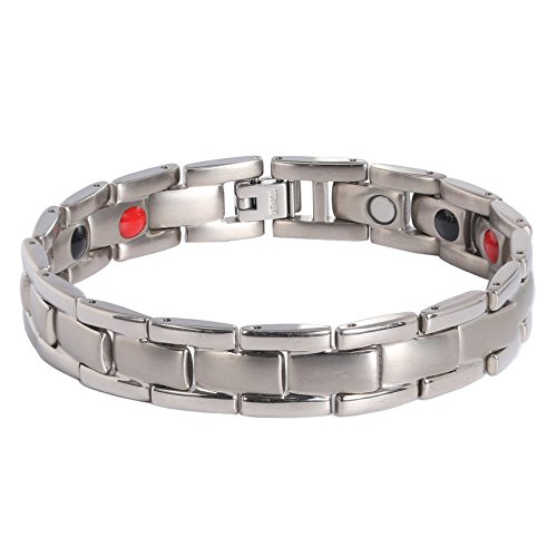 - Feature : Crafted from Super Strong yet Super Light Weight Pure Titanium / Classic simple design in silver color; Length: 21.5cm; Width: 1.6cm / Genuine 4 natural Elements for Ultimate Health Benefit: Negative Iron + Far Infrared Red (FIR) + Germanium + 3000 Gauss Magnets / Comes with FREE Nice Ready to Give gift box + FREE link removal tool - allows you to adjust the size in the comfort of your home
