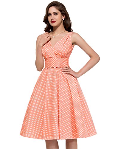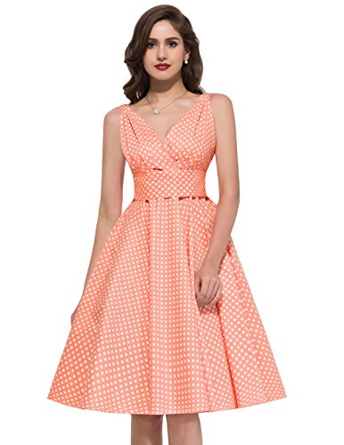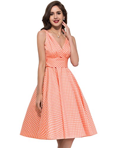 -. Binding : Apparel -. Brand : Paul Jones®Dress -. Department : womens -. Feature : Natural Dress Features: 1) Deep V-Neck 2) Concealed zipper at right side 3) Wide waistband is removable / BP091 Features: 1) Crew Neck 2) Concealed zipper in the back 3) Wide waistband is removable / Natural Dress is Made by Grace Karin Brand; 08/ 09/ BP091 Dress are Made by Belle Poque Brand / Size: Please read our size chart picture on carefully (Not the Amazon Size Chart) / We sest buy a Petticoat to match with this dress, it will make the dress swing and perfect -. ProductGroup : Apparel -. ProductTypeName : DRESS -. Title : PAUL JONES Women 50S Polka Dot Sundress Deep V-neckline Vintage Dress CL6295