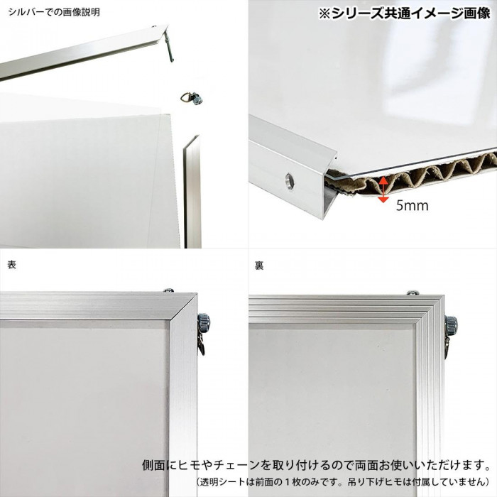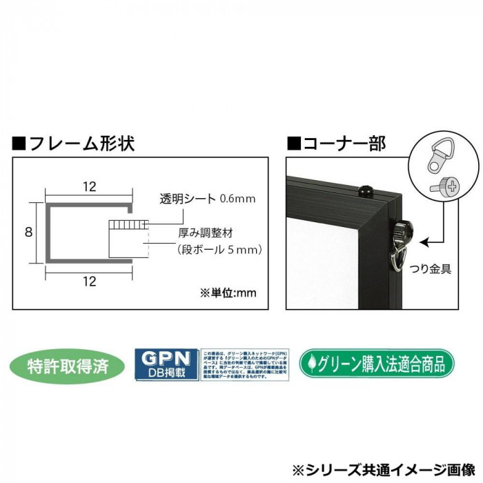 ポスター、POP、写真、版画等、幅広く利用できる、軽くて丈夫なアルミフレームです。