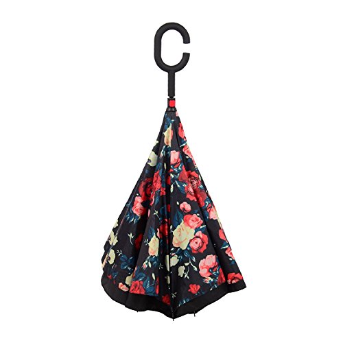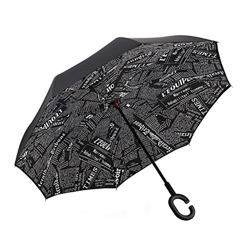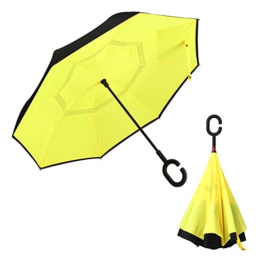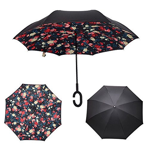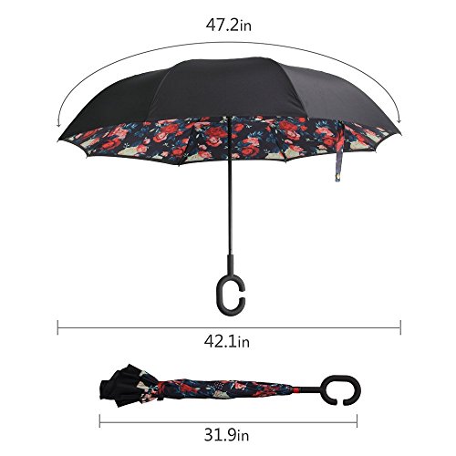 -. Feature : Standing Design: no need additional standing holder, reverse folding design makes it easy to stand by itself and drip free / Hand Free: C-type frosted handle can release one of your hands, it is convenient for you to do other important things / Gift Idea: a necessary tool for your car and outdoor travel. Wind proof, sun & rain available and anti-uv, make it a perfect Christmas gift or Birthday gift for your partents, friends, colleagues and lovers / Reverse Folding: unique inverted open & close design, helping trap the water on the inside and won't get the car floor wet / Double Layer: double layer pongee umbrella cloth, 8 fiber bones and carbon fiber stick, multi-color available