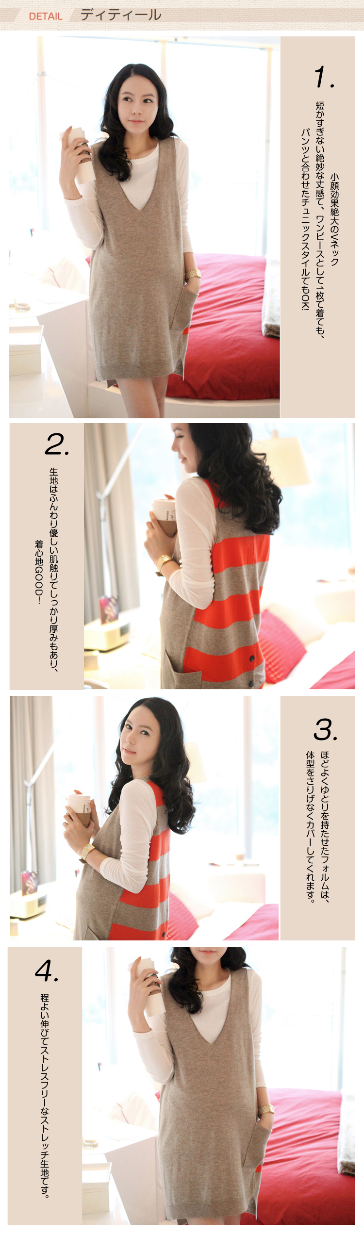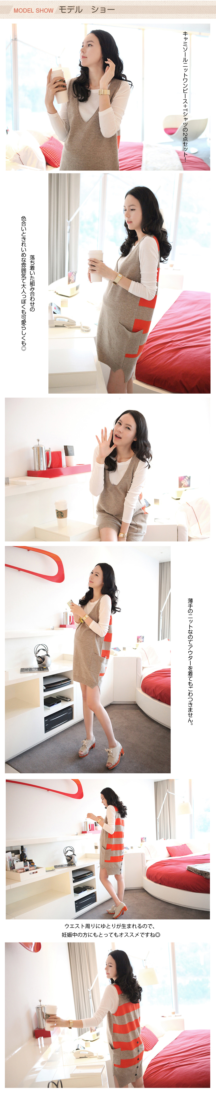 | キャミソールニットワンピース+Tシャツの2点セット!落ち着いた組み合わせの色合いときれいめな雰囲気で大人っぽくも可愛らしくも◎薄手のニットなのでアウターを着てもごわつきません。ウエスト周りにゆとりが生まれるので、妊娠中の方にもとってもオススメですね◎ | |