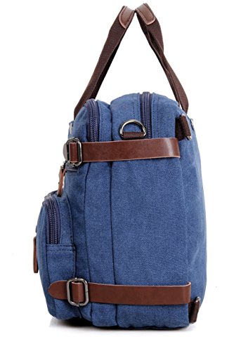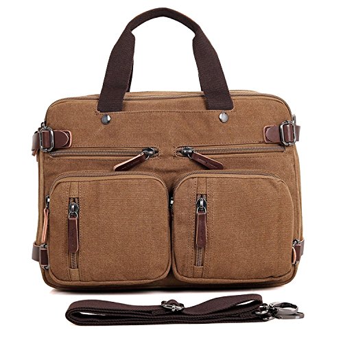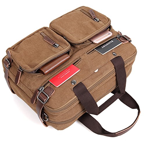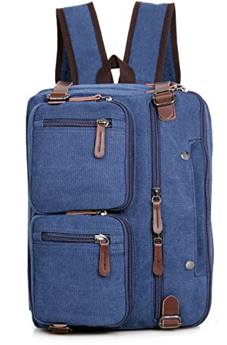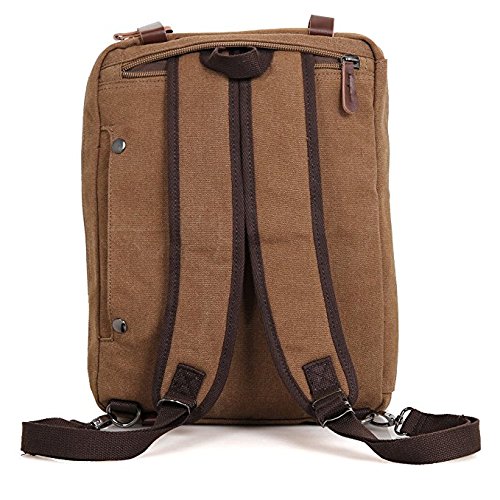 -. Feature : Backpack Messenger Bag as a Laptop bag; it has a padded compartment for your laptop- it could easily function as 13.3, 14, 14.4 inch or up to 15" laptop-computer models. It is advisable to check your computer actual measurement against those of the bag- 15 x 5.5 x 12.2 inches / The perfect Daypack. Not only a laptop bag. Clean Vintage Backpack Messenger Bag gives a room to your laptop; but the bag, as hopefully life, does not exhaust itself with this one-function. Besides easily transforming from a backpack to a messenger bag, the universal appeal of its vintage style, as its expandable capacity, makes it a good fit for many uses indeed; in that sense, CV Hybrid Backpack Laptop Messenger Bag is your must-be daypack- good for school, as for traveling as well / Clean Vintage classically-inspired & styled briefcase-like messenger bag for men / women is fashioned mainly from a waxed canvas and a bit of leather straps, which add, in turn, to the rustic appeal of this canvas leather messenger bag. / Cut for function and performance, Clean Vintage convertible, 3 in 1 bag- both a messenger bag and a backpack in one bag- okay, it is a briefcase/handbag as well- is made out of first class canvas and leather trim. / Besides easily transforming the bag from a backpack to a messenger bag, the universal appeal of its vintage style, as its expandable capacity, makes it a good fit for many uses indeed. Whatever and wherever you choose, Clean Vintage Hybrid Backpack Laptop Messenger Bag could prove itself as your first-choice bag