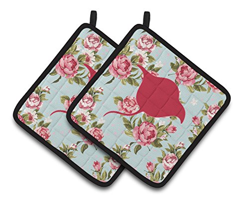 Caroline's Treasures Stingray Shabby Chic Blue Roses Pair of Pot Holders BB1094-RS-BU-PTHD, 7.5HX7.5W, Multicolor