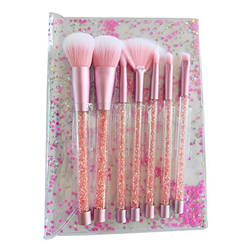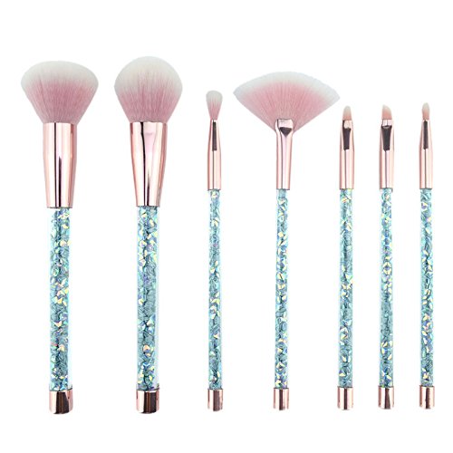 Fashionwu 7 Pcs Fashion Crystal Glitter Diamond Makeup Brushes Set Foundation Cosmetic Brush Tools with Bag