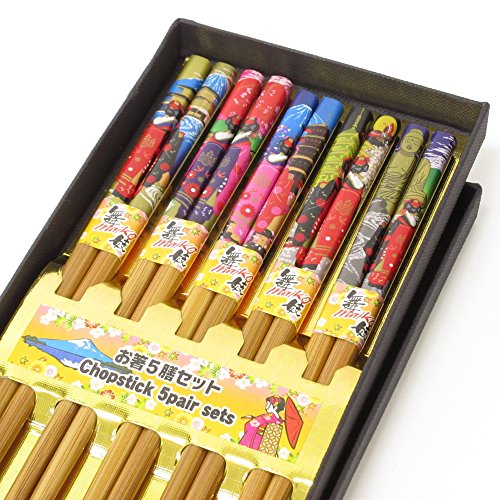 Authentic Japanese Traditional Art Bamboo Chopsticks 5 Piece Set: Maiko in Kyoto