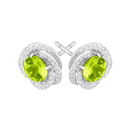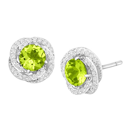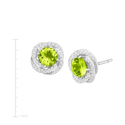 All of your friends will be green with envy when they spy these glistening earrings. Two round-cut natural peridot totaling 2 ct are surrounded by swirling white sapphires totaling 1/3 ct in sterling silver. Pieces measure 7/16 by 7/16 inches.Feature