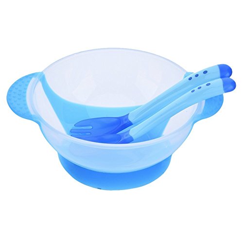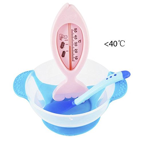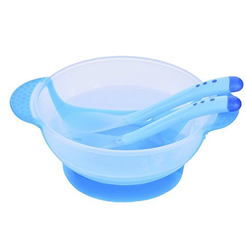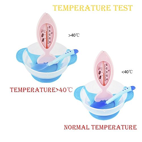 -. Feature : When the temperature of the food is more than 40 degree centigrade, spoon mouth color will gradually turned white in 8 seconds (warning temperature is too high, not to feed the baby) / Permanently attached suction base helps prevent spills / Material: Plastic, BPA FREE, and security does not brokenMaterial: Plastic, BPA FREE / Great for weaning, toddler feeding and baby led weaning.And Great for babies and kids to have fun while they eat but without the mess. / Designed for children, shaped like a flying saucer, and simple and easy to fit for your baby,