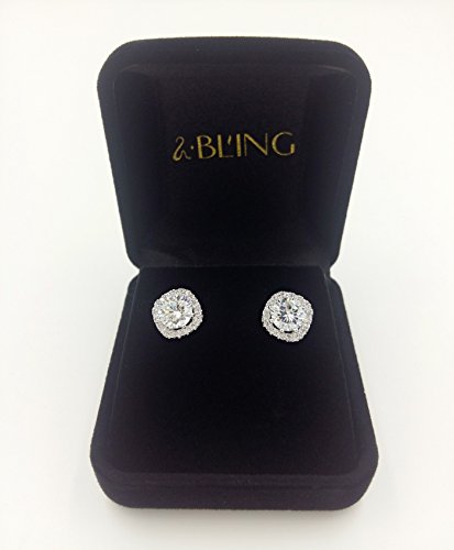 Stud earrings featuring platinum plated sterling silver with textured tone, punctuated with dazzling cubic zirconia cushion shape beauty marks
