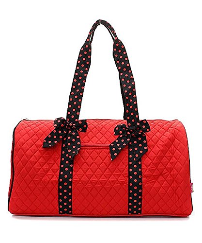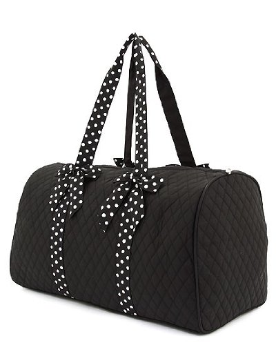 -. Title : Belvah Large Quilted Solid Color 21" Duffle Bag with Polka Dot Detachable Ribbons