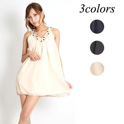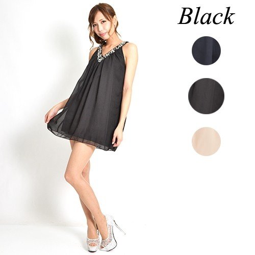 -. Feature : (ジークィーン) G-QUEEN 1351ビーズ&ブラックストーン刺繍シフォンミニドレス