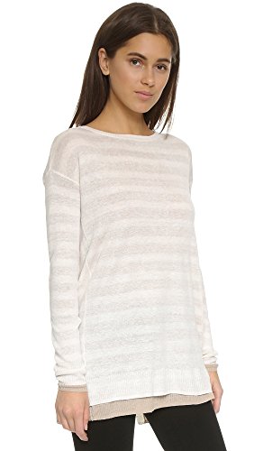 A double-layered Three Dots sweater, composed of fine-knit linen. The reversible piece is styled with one striped side, and one solid side, and crossover back panels cut a revealing profile. Ribbed edges. Long sleeves.Feature