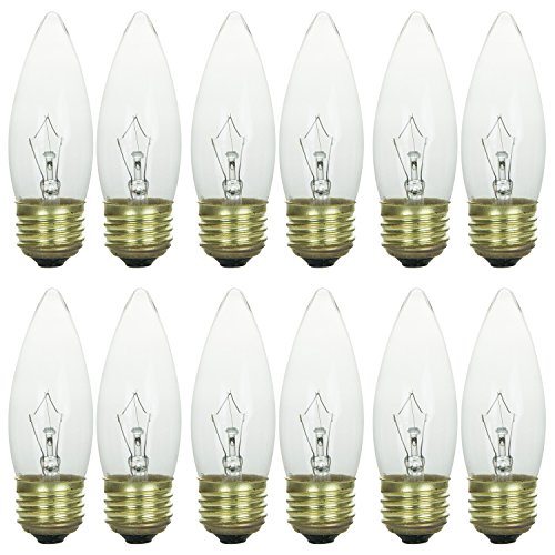 Sunlite 40ETC/32/12PK 40W Incandescent Torpedo Tip Chandelier with Crystal Clear Light Bulb and Medium E26 Base (12 Pack)