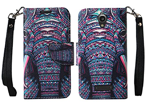 ZTE Zmax 2 Case, AT&T Go Phone ZTE ZMAX 2 Wallet Case by iViva For Luxury Magnetic ID Folio Book Wallet Case + A Touch Sensitive Stylus Pen (Wallet Tribal Elephant)