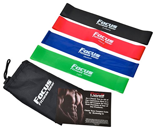 Premium exercise resistance 4 loop bands set popular for workouts, stretching and physical therapy -- for legs, hips, shoulders, arms, core, chest and glutes strengthening & stretch -- both men and women fitness workout, yoga or Pilates, at home or gym -- plus free exercise eBook, video & carrying bag.