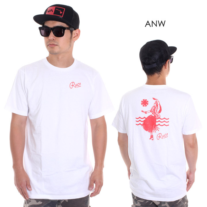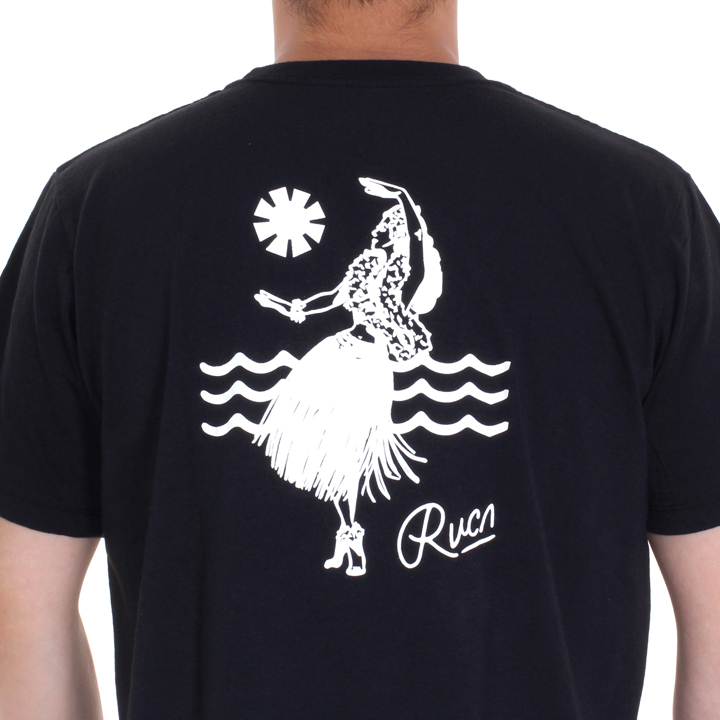 フラガールのイラストが配され、カジュアルなサーフスタイルを演出してくれるTシャツ!! フロントにはネオンサインを彷彿とさせるシンプルなスクリプトロゴを落とし込み、爽やかな印象をプラス。 また、やや着丈が長いシルエットで、ハーフパンツと相性も良く、 ビーチ・タウンともにマルチに着回せるオススメの1着!!