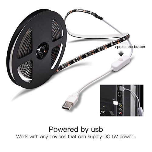 JACKYLED TV LED Light Strip lights Purewhite USB Plug DC 5V 6.6ft Bias Lighting 6000k Switch Button Control Waterproof Backlight Kit for Monitor Cabinet Sideboard Wardrobe