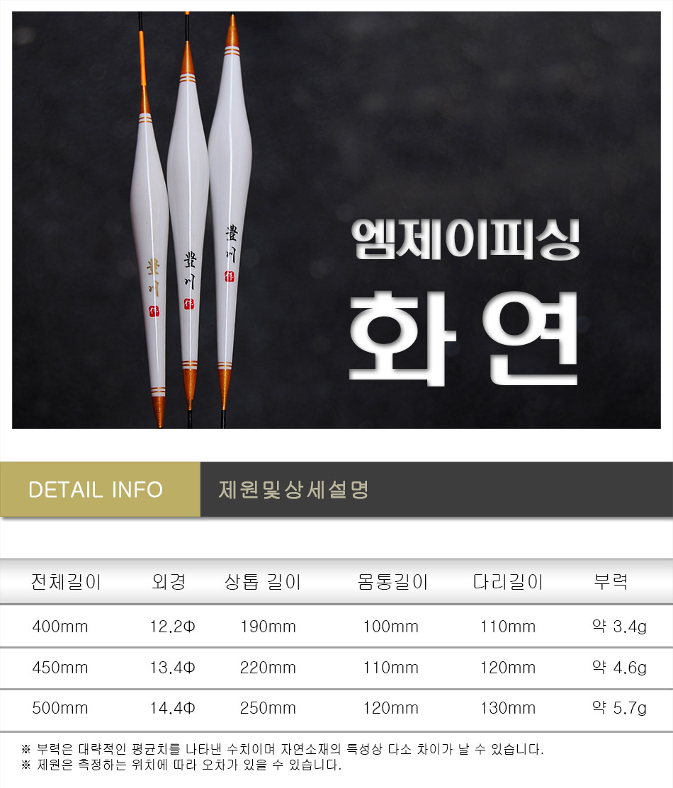 엠제이피싱 화연(40,45,50cm) 민물낚시찌