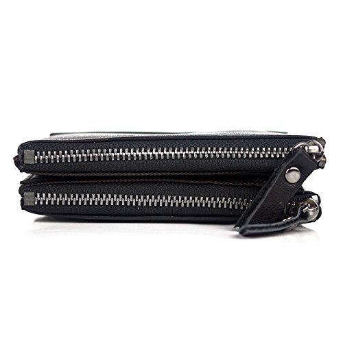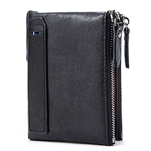 -. Feature : High Quality Material-- The wallet is made of 100% top layer genuine leather, polyester inner lining and smooth metal zippers. It is well-made and durable for your long time use. / Minimalist Front Pocket Wallet-- Size: 12cm×9cm×3cm, this men's wallet is a little thick but it's short and small, it can be easily fit in your front/back pocket, it's suit to jeans or coat. / Functional And Capacity-- a retro leather wallet with 1 ID Windows, 6 card slots for credit cards or business cards, 2 zippered coin pockets, 2 full-length cash compartments and 1 rear pocket for keys, changes or other little things. / Red Style, Perfect Gift-- This is a vintage look and old fashion leather wallet, it is suit to men, guy and boy, it's a nice gift for your husband, boy, father, grandpa. Buy now for them! / RISK-FREE SHOPPING-- We do offer 100% Satisfaction Guarantee. Within 30 days, if for ANY reason you do not satisfy with this zippered pocket wallet we will do 100% refund or replace immediately. No questions need.