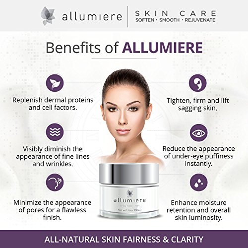 - INCREASE SKIN’S HYDRATION & IMPROVE TEXTURE – A deeply-penetrating, age-defying spa-quality moisturizer,Allumiere helps boost your natural collagen production and hydrate your pores with hyaluronic acid and essential peptides.