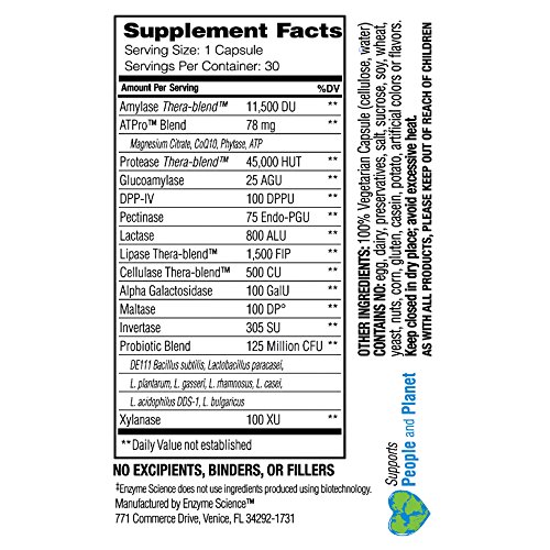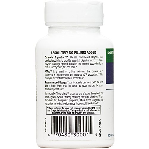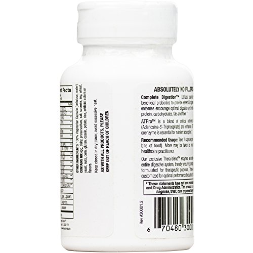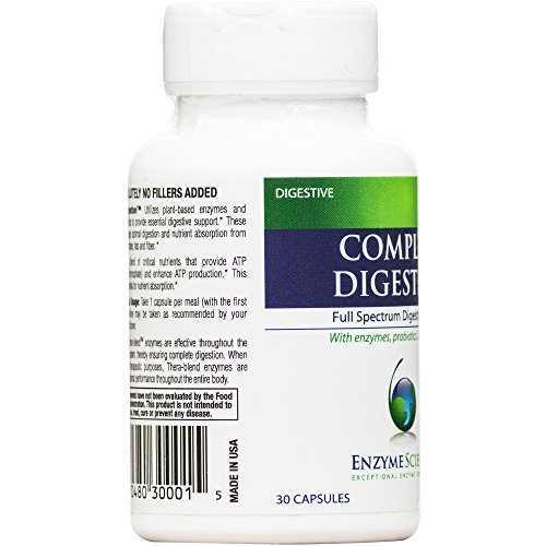 Enzyme Science Complete Digestion - Even individuals who consume a healthy diet may experience digestive difficulty from time to time. These difficulties often manifest themselves in a variety of symptoms including occasional gas, bloating, indigestion, abdominal discomfort, distention, irregularity and general food intolerance. While antacids and laxatives may be used to treat symptoms, they fail to address the underlying cause of impaired digestion. Continuous use of such symptom suppressors may result in dependency. Complete Digestion provides digestive support from a synergistic blend of digestive enzymes, probiotics and nutraceuticals. This combination not only provides critical support for a healthy intestinal environment, but also works to aid impaired digestion, a fundamental cause of intestinal disturbance. Enzymes are the most effective tools made by the body to aid digestion and assimilation of nutrients. Nutrients supplied to the body are utilized as energy for various biological processes. When there is an insufficient quantity of digestive enzymes present in the body, undigested food may pass into the large intestine and be acted upon by intestinal flora. Byproducts'of bacterial digestion and yeast fermentation include hydrogen, carbon dioxide and methane gas. The consequence of such combination results in familiar symptoms of occasional gas, bloating, and inflammatory responses which may damage gut integrity. Enzyme supplementation encourages healthy digestion of proteins, fats, fibers and carbohydrates, in addition to promoting an optimally functional Gl tract.Feature
