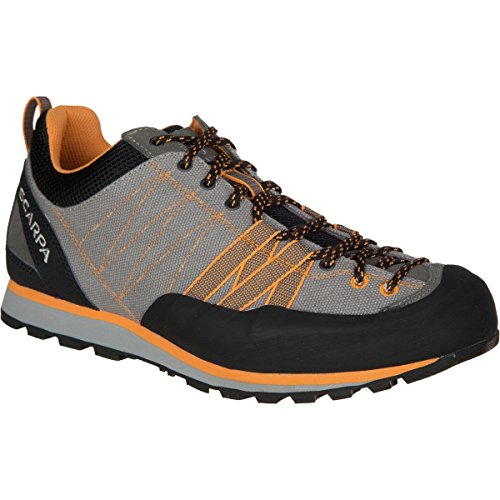 FEATURES of the Scarpa Men's Crux Canvas Shoe Forefoot webbing with Kevlar secures the forefoot for climbing precision Rubber toe rand protects your foot on the trail Vibram Vertical Approach sole with sticky rubber for long lasting grip Lacing toe the toe allows for a precise fit Canvas uppers allow the shoe to breathe better even in the hottest conditions SPECIFICATIONS of the Scarpa Men's Crux Canvas Shoe Upper: 1.8mm Suede and Canvas Lining: Recycled Polyester Insole: Recycled Polypropylene Midsole: Vertical - Dual-Density EVA Sole: Vibram Vertical Approach Last: BN Weight: 1/2 pair: 12.2 oz / 346 g This product can only be shipped within the United States. Please don't hate us.Feature