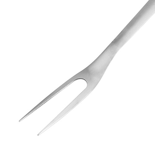 SUPERIOR QUALITY and DESIGN: Our ergonomically designed heavy duty spatula, meat fork and basting brush are each made with a single piece of extra thick solid stainless steel, so they are super sturdy, durable and rust resistant. They won't bend or break. The utensils feature thick soft touch handles that provide a comfortable and secure grip, while also keeping the handles cool when grilling. All 4 utensils have oversized hanging loops for easy storage.