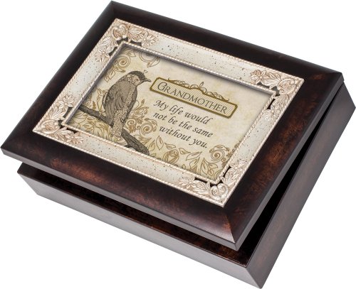 COTTAGE GARDEN GRANDMOTHER BURLWOOD WITH SILVER INLAY ITALIAN STYLE MUSIC BOX / JEWELRY BOX PLAYS WONDERFUL WORLD