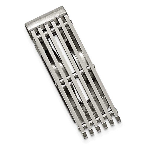 Studio : Chisel Publisher : Chisel Binding : Jewelry Product Description Chisel Stainless Steel money clip Contemporary designed. This money clip is brushed finish and weigh approximately (15.06 grams). It is made from stainless steel. Contemporary styling underlines the unique look of Chisel. Bold and sophisticated, this collection uses the latest materials which guarantee lasting quality and good looks. Each piece of Chisel jewelry is packaged in a fabric lined black and grey custom Chisel box or pouch. Packaging is complimentary with purchase. 0