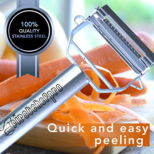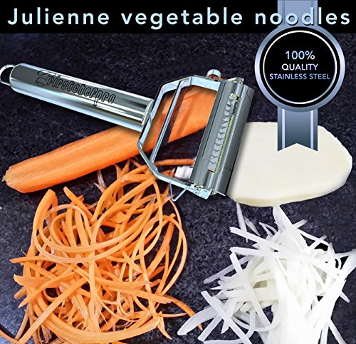 JULIENNE LIKE A PRO with ultra sharp stainless steel blades. You too can produce zucchini noodles, julienne vegetables with just one tool. Simply run the julienne peeler along the vegetable to create results that any professional chef would be proud of.