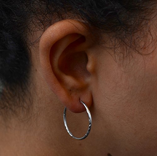 Looking for something elegant, easily wearable, and delicately beautiful for your jewelry box? Enjoy this stylish and one of a kind pair of 14k white gold endless hoop earrings. An exquisite design of half polished, half satin finish, and with small engravings patterned around, these hoops are a unique find among traditional polished gold jewelry. And the white gold color of these hoops is extremely versatile, allowing you to wear them with any style or outfit. Secure and comfortable, put them in and wear them for days. Each pair of hoop earrings comes gift wrapped in an attractive package. These hoops are 14k white gold. They are NOT plated, but have a pure gold body with a hollow interior. Every hoop comes with an authenticated 14k stamp.Feature