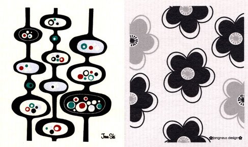 Swedish Dishcloth, Set of 2 Mid-century Modern Retro Designs (Black)