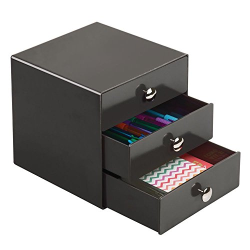 mDesign Office 3 Drawer Storage Organizer for Pens, Notepads, Staples - Slate