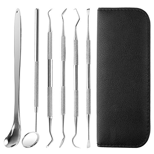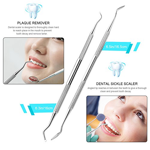Package list: 1 x dental anti-fog mirror 1 x tongue scraper 1 x tarter remover 1 x sickle scaler 1 x dental pick 1 x tarter scraper