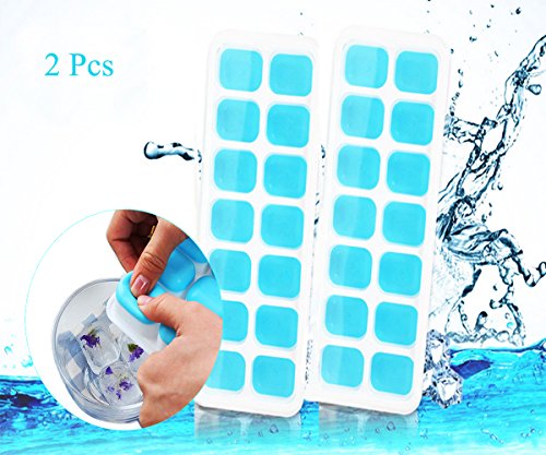 - FOOD-GRADE SAFETY MATERIAL: Made of PP (Polypropylene) and TPE (Thermoplastic Elastomer) material which are certified by LFGB, these 2 ice cube trays guarantee safety and durability. Each tray makes 14 nice-sized cubes for a total of 28. Great for home use, parties and bars etc.