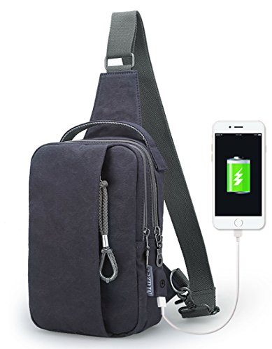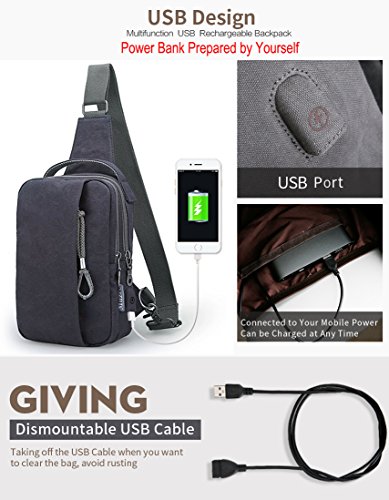 Muzee Sling Bag for Men Chest Shoulder Gym Backpack Sack Satchel Outdoor Crossbody Pack with USB Charging Port