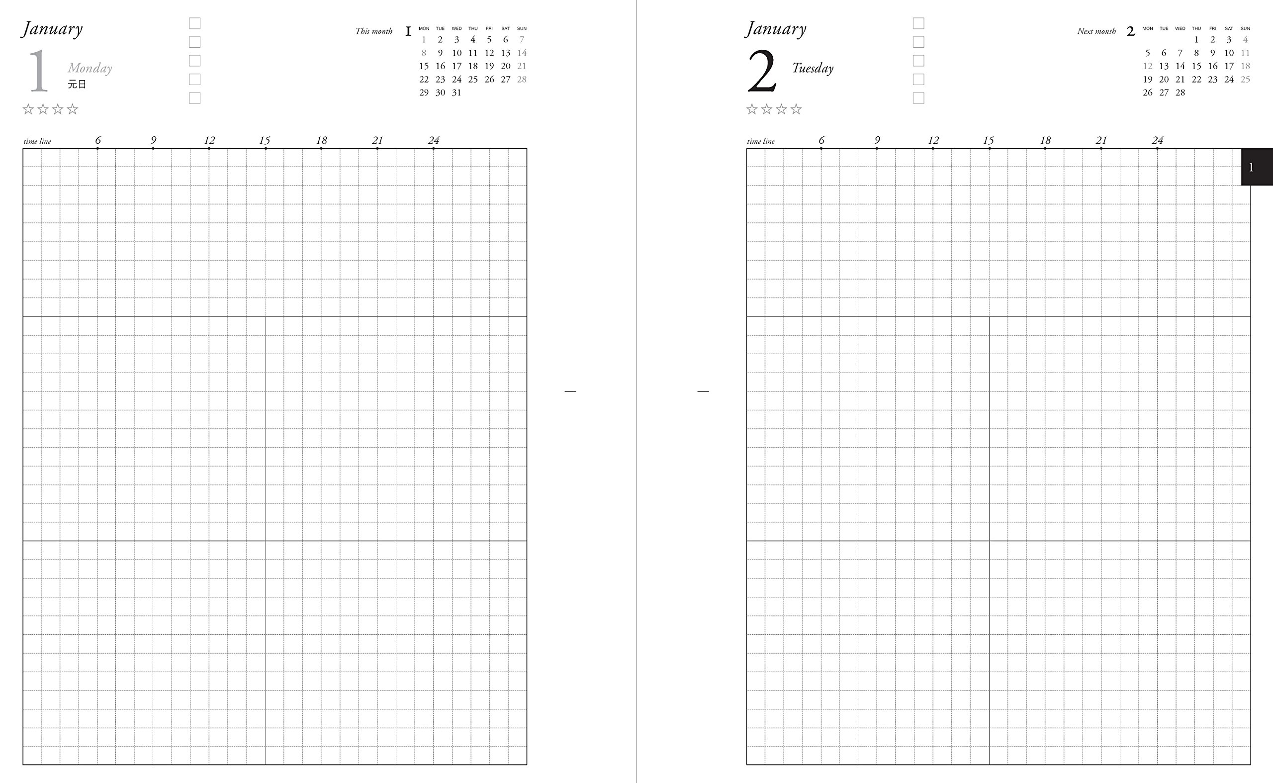 · Since you can write plenty [1 page per day], it is a grid, so it is easy to write charts and figures as well as schedule and memos