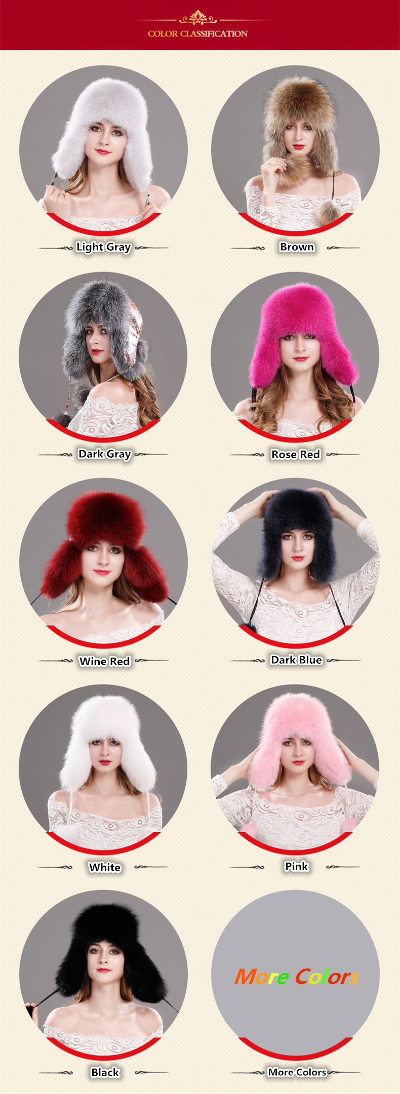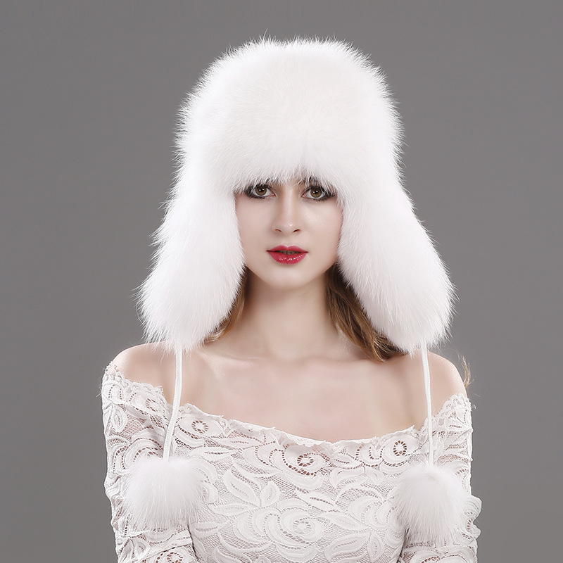 - 冬季毛皮捕手帽材质:100%天然真狐皮,羊皮壳,绗缝衬里。